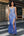 Robe de bal longue à bretelles réglables imprimée trapèze bleue